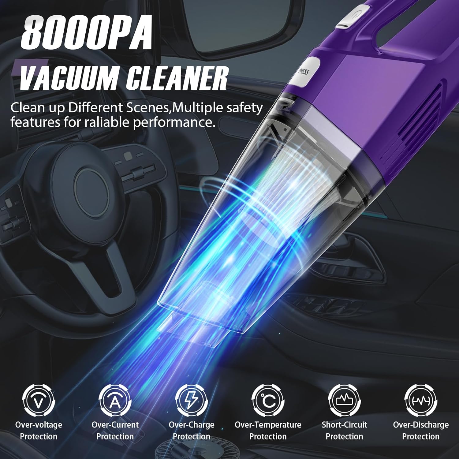- 【Powerful Suction】This handheld vacuum cordless has 8000PA strong suction, easily removing dust, debris, and pet hair from sofas, stairs, and car seats. Cleaning your space is more than just tidying up; it’s about tidying up your life.