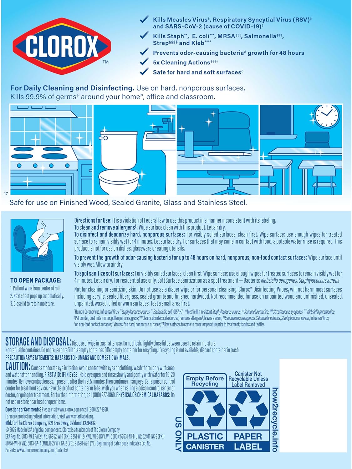 - MULTI SURFACE WIPES: These disinfecting wipes are safe to use on over 100 surfaces, including finished wood, sealed granite, glass and stainless steel in the kitchen, bathroom or high touch places